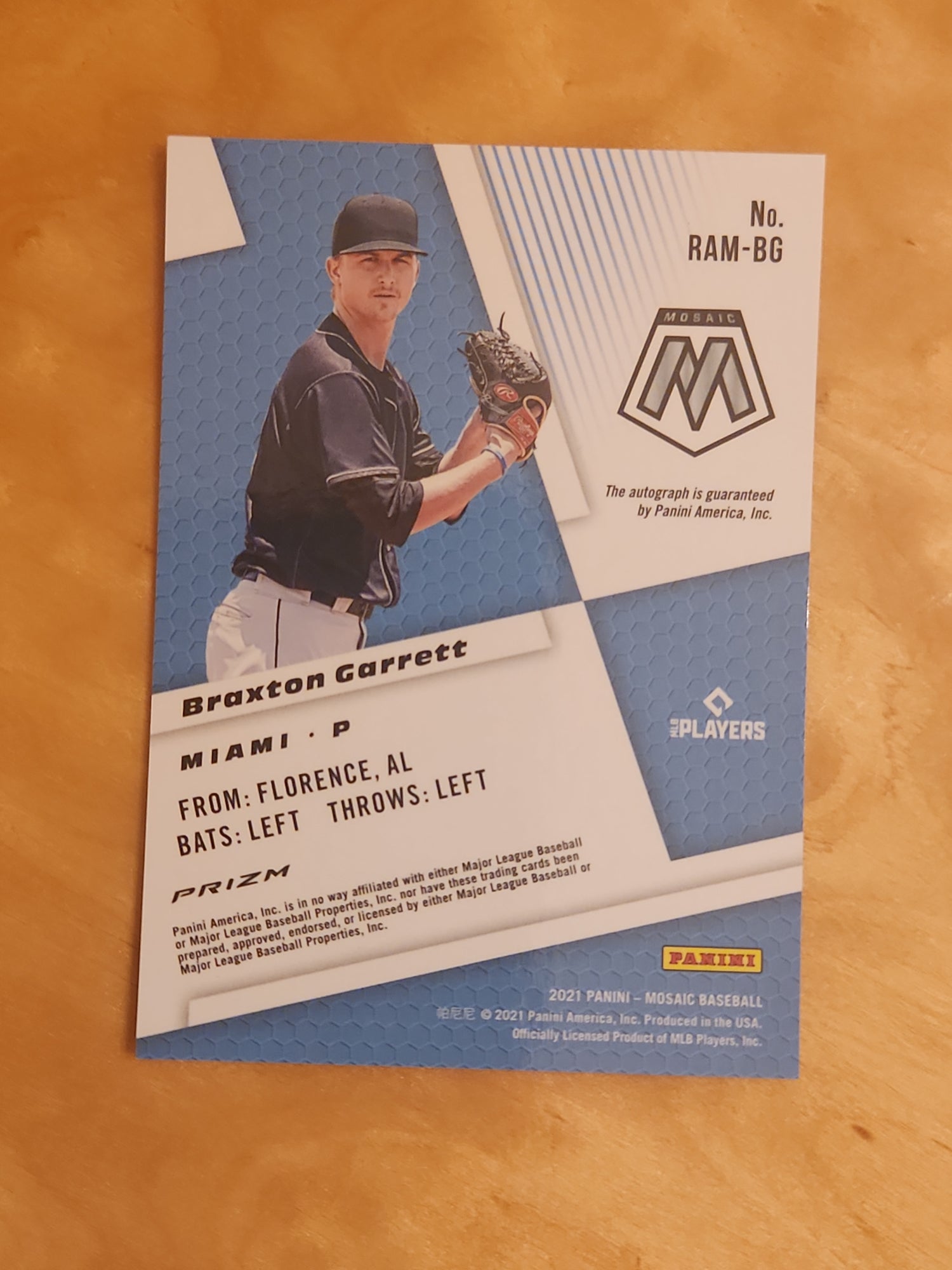 2021 Panini Mosaic Rookie Autographs Braxton Garrett #RAM-BG RC Rookie Auto