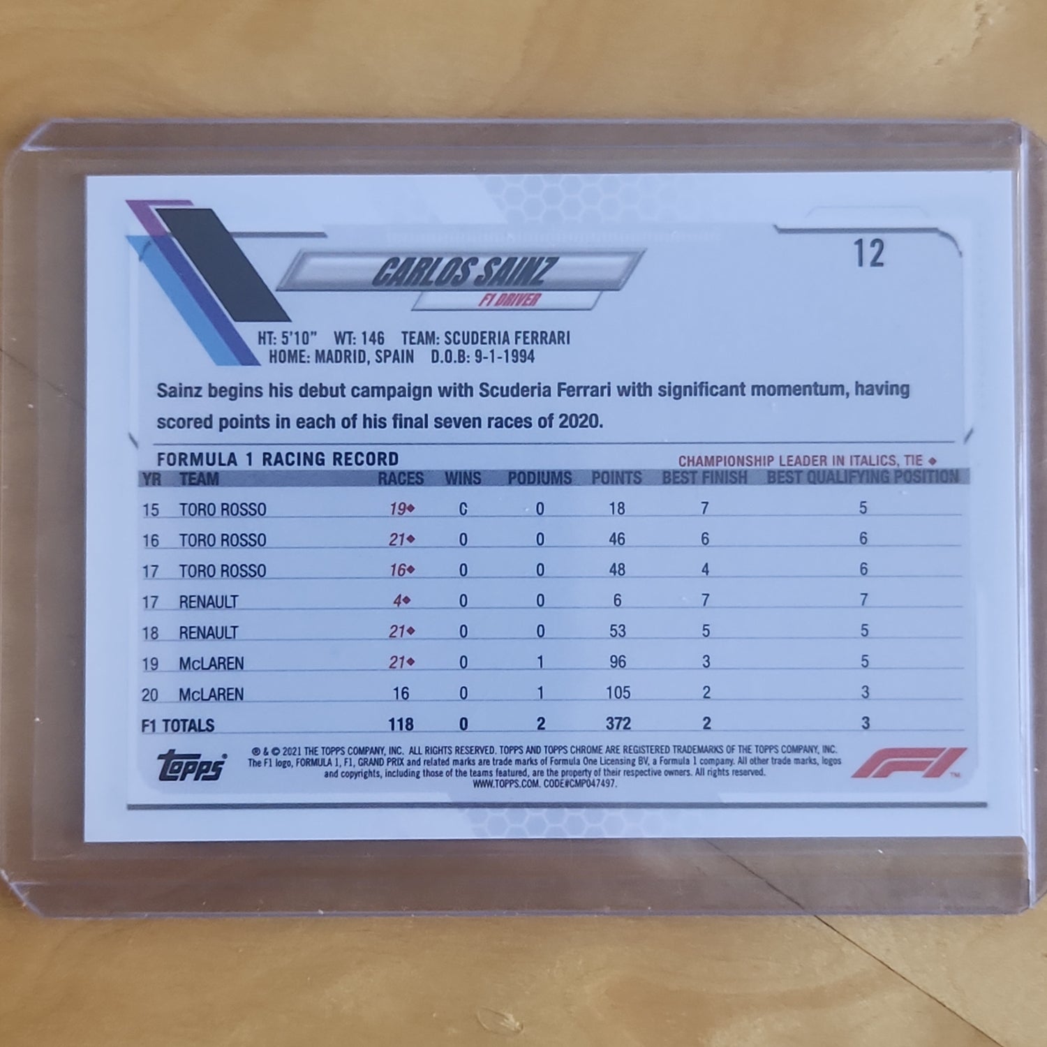 2021 Topps Chrome F1 Carlos Sainz #12 Scuderia Ferrari