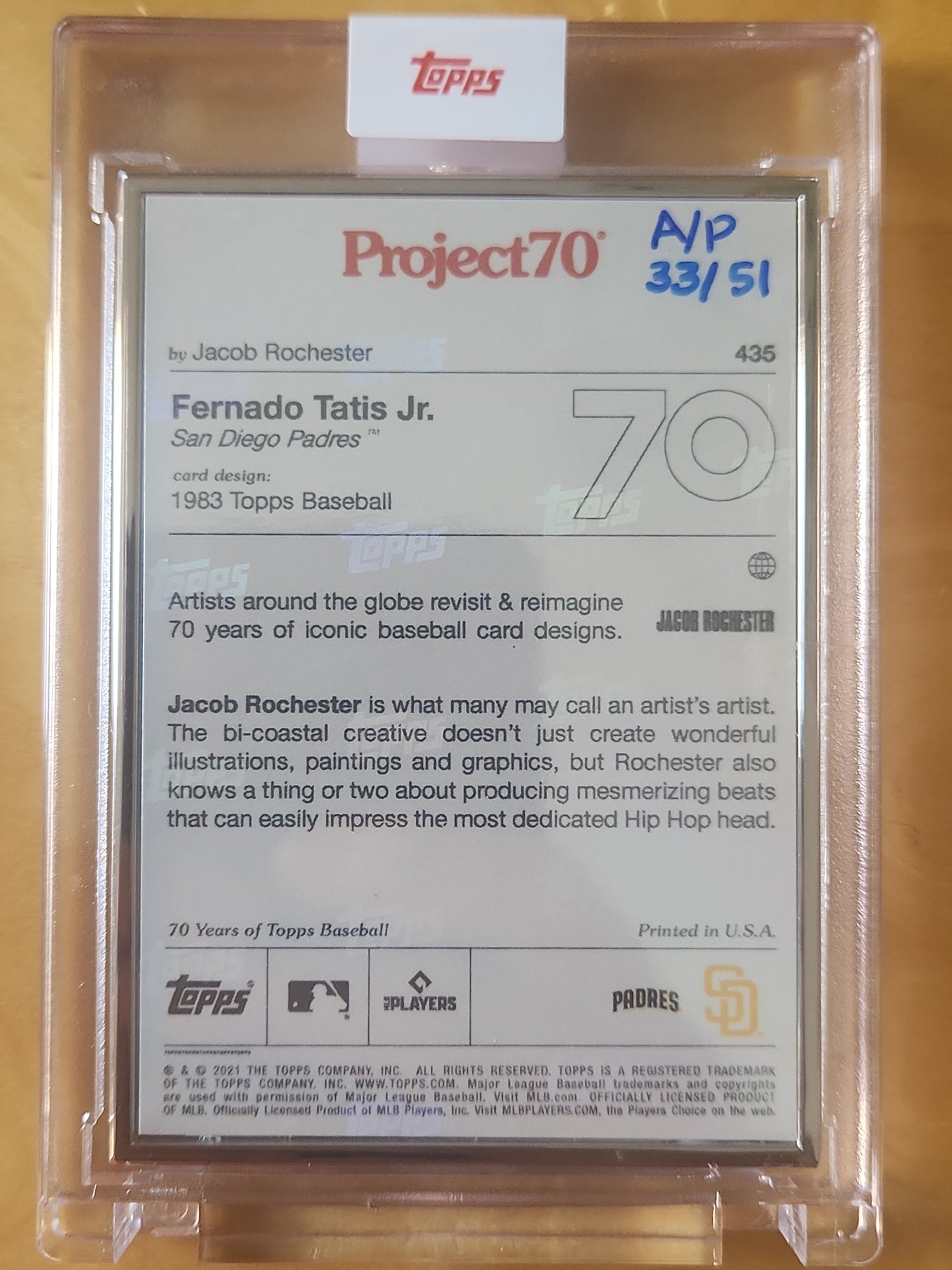 Topps Project 70 Artist Proof By:Jacob Rochester Fernando Tatis Jr. 33/51 #435
