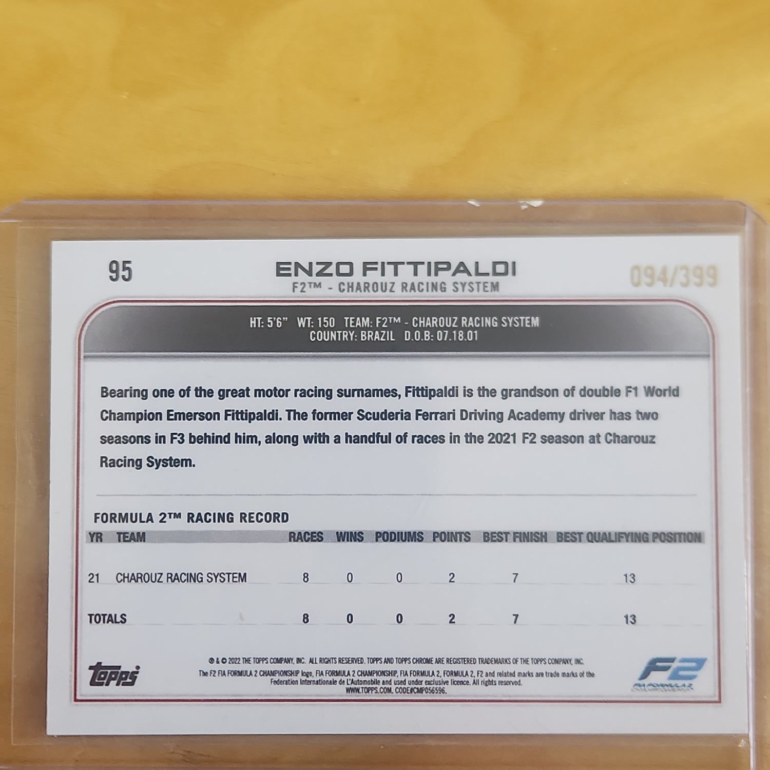 2022 Topps Chrome F1Enzo Fittipaldi Future Stars F F2 Purple 094/399 #95 Charouz Racing System
