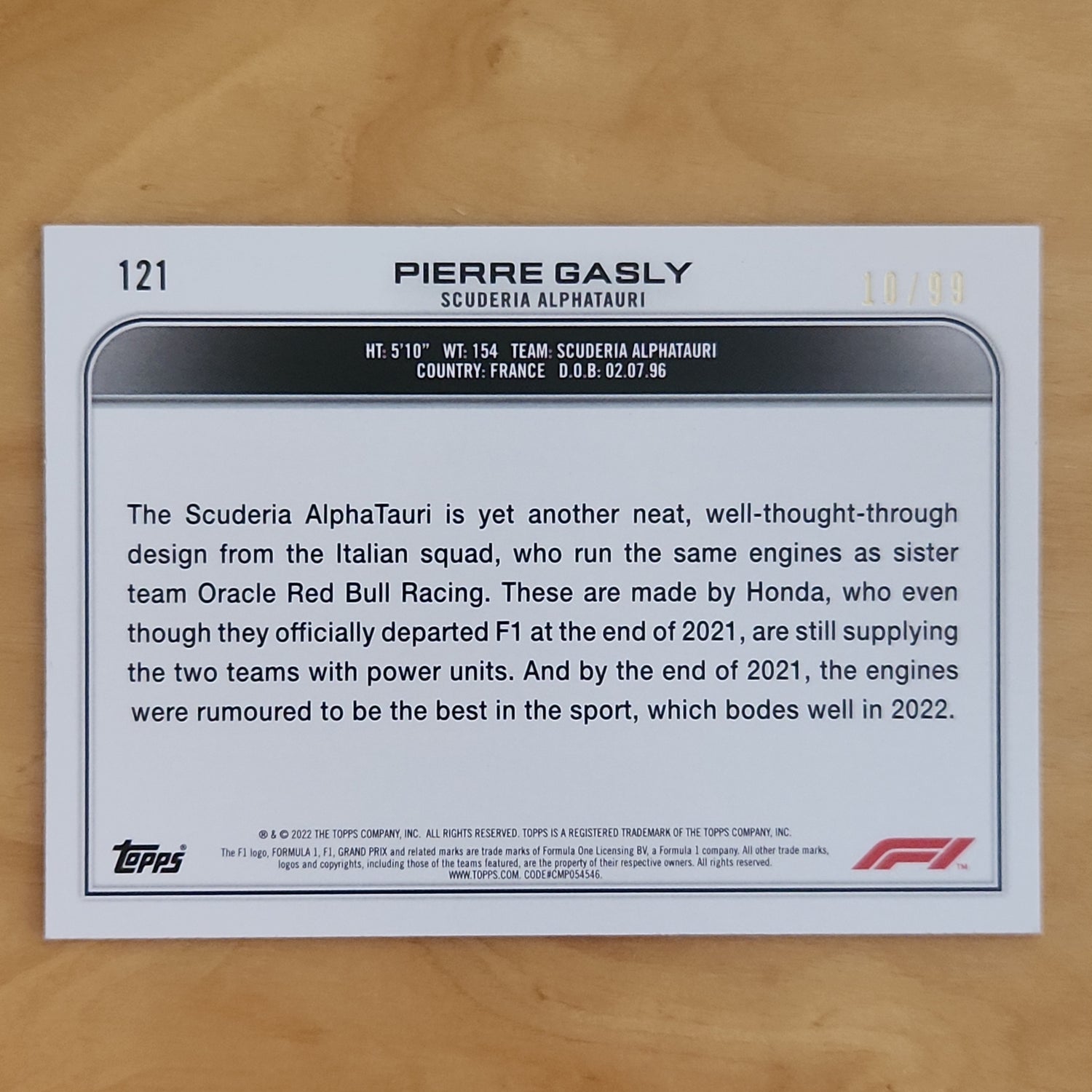 2022 Topps F1 Pierre Gasly #121 Blue Parallel 10/99