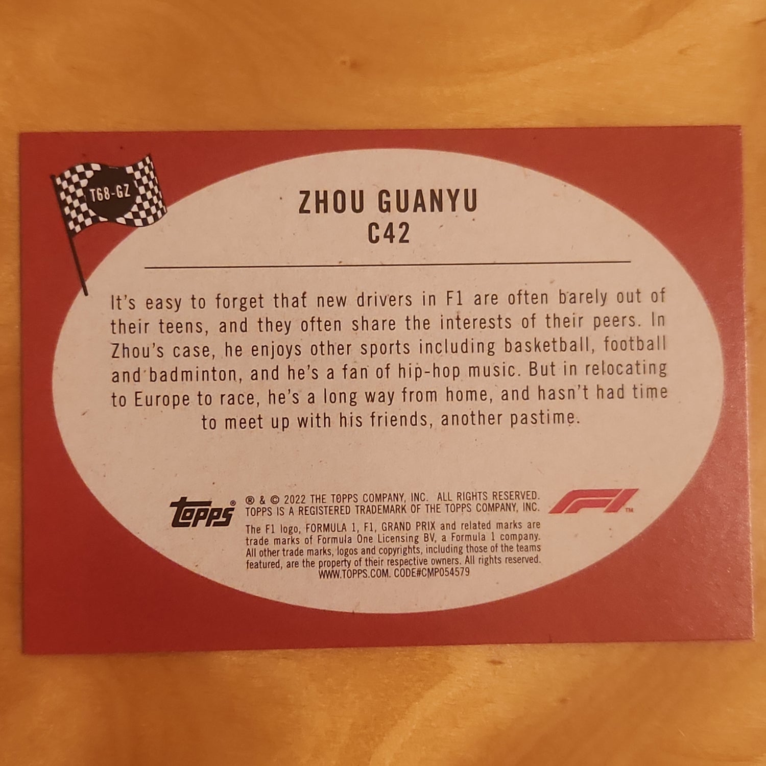 2022 Topps F1 Racer Zhou Guanyu C42 RC #T68-GZ