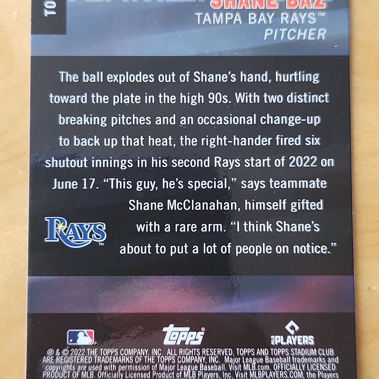 2022 Topps Stadium Club Chrome Shane Baz Team of the Future insert RC #TOF-19 Tampa Bay Rays