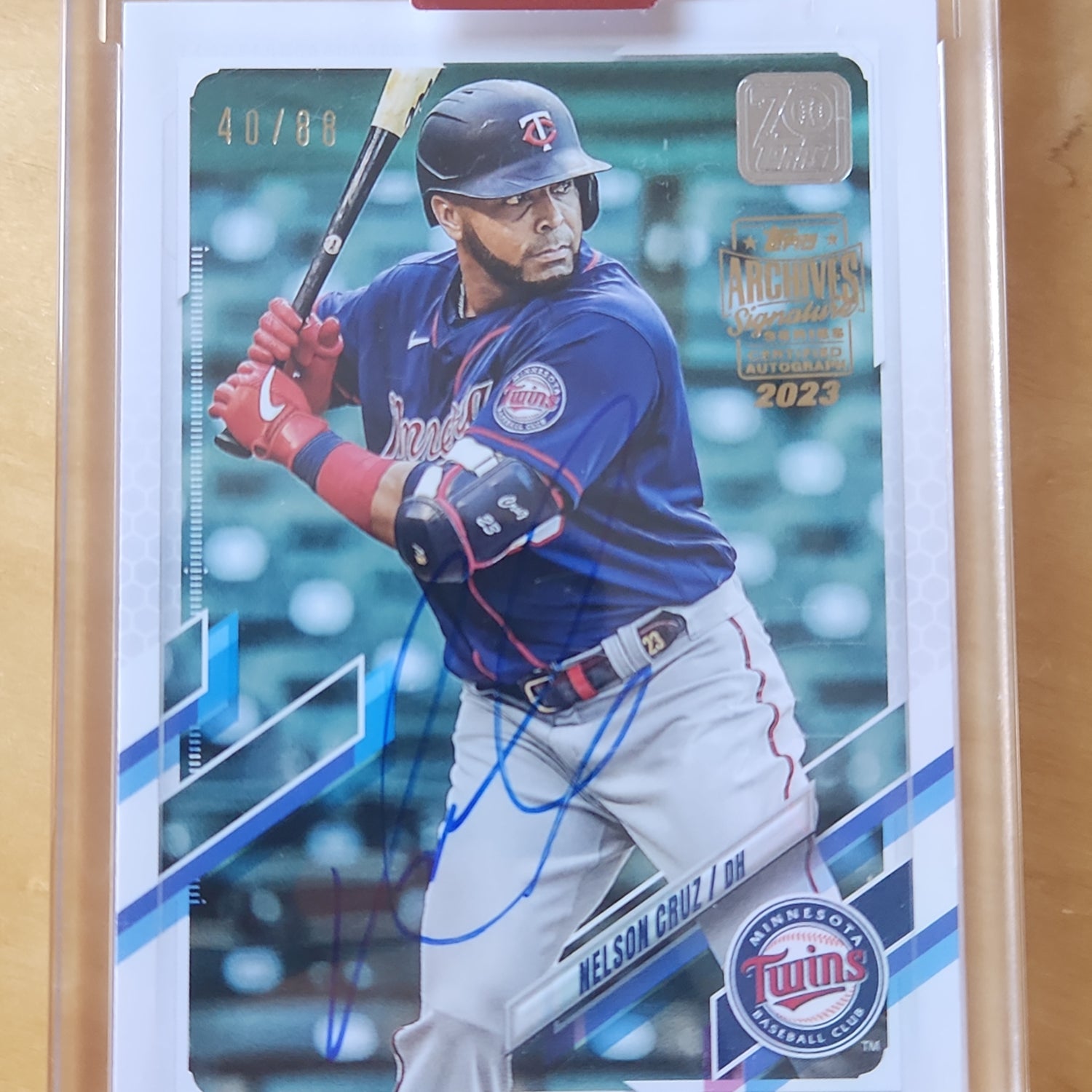 2023 Topps Archives Signatures Series Nelson Cruz 70 Years Anniversary AUTO 2021 Buyback 40/88 #219 Minnesota Twins