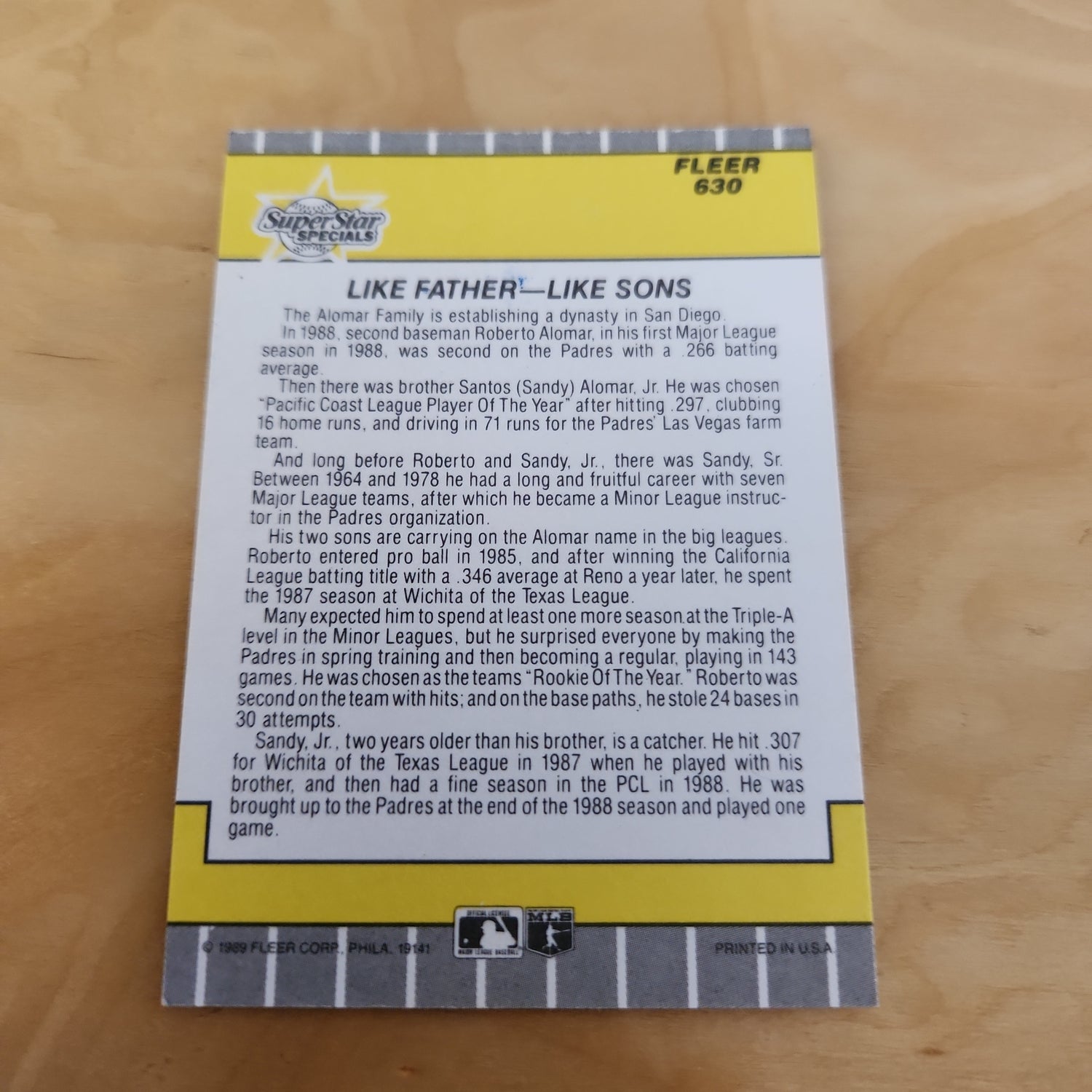 Fleer Superstar Specials Roberto Alomar & Sandy Alomar Jr. Auto #630