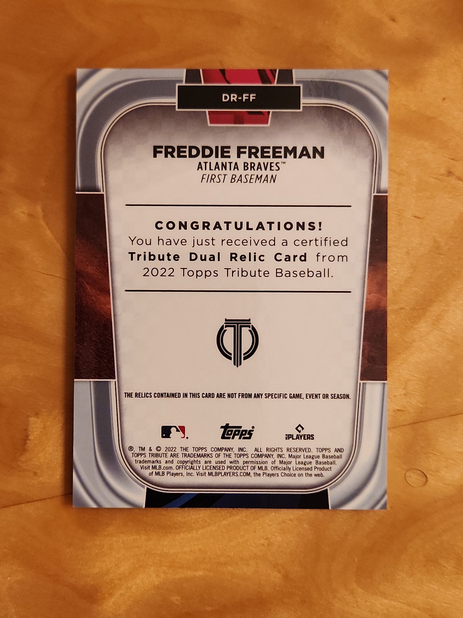 Freddie Freeman 2022 Topps Tribute Dual Relic 186/199 Atlanta Braves #DR-FF