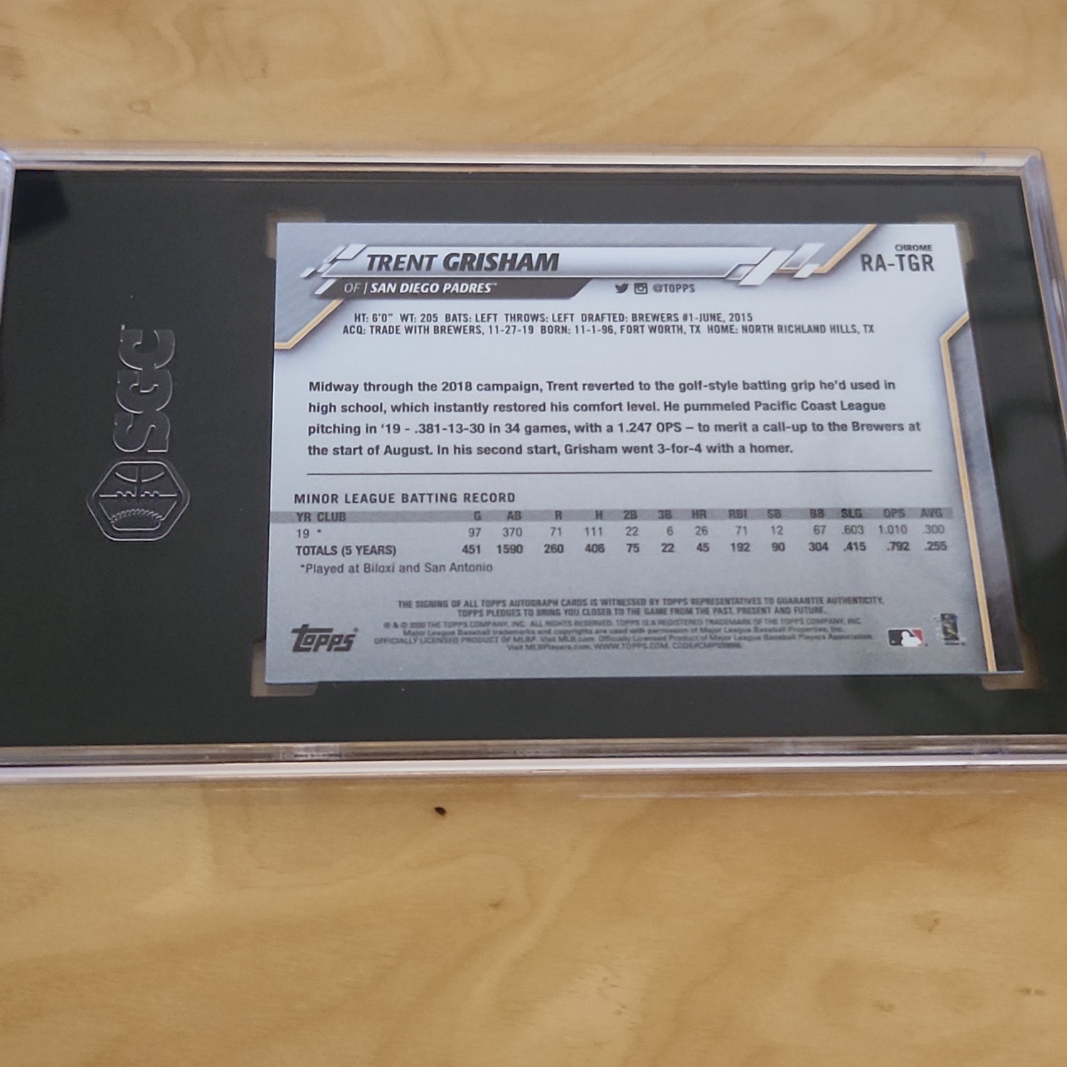 Graded SGC 9.5 Mint Topps Chrome Trent Grisham Graded RC Auto 10 #RA-TGR