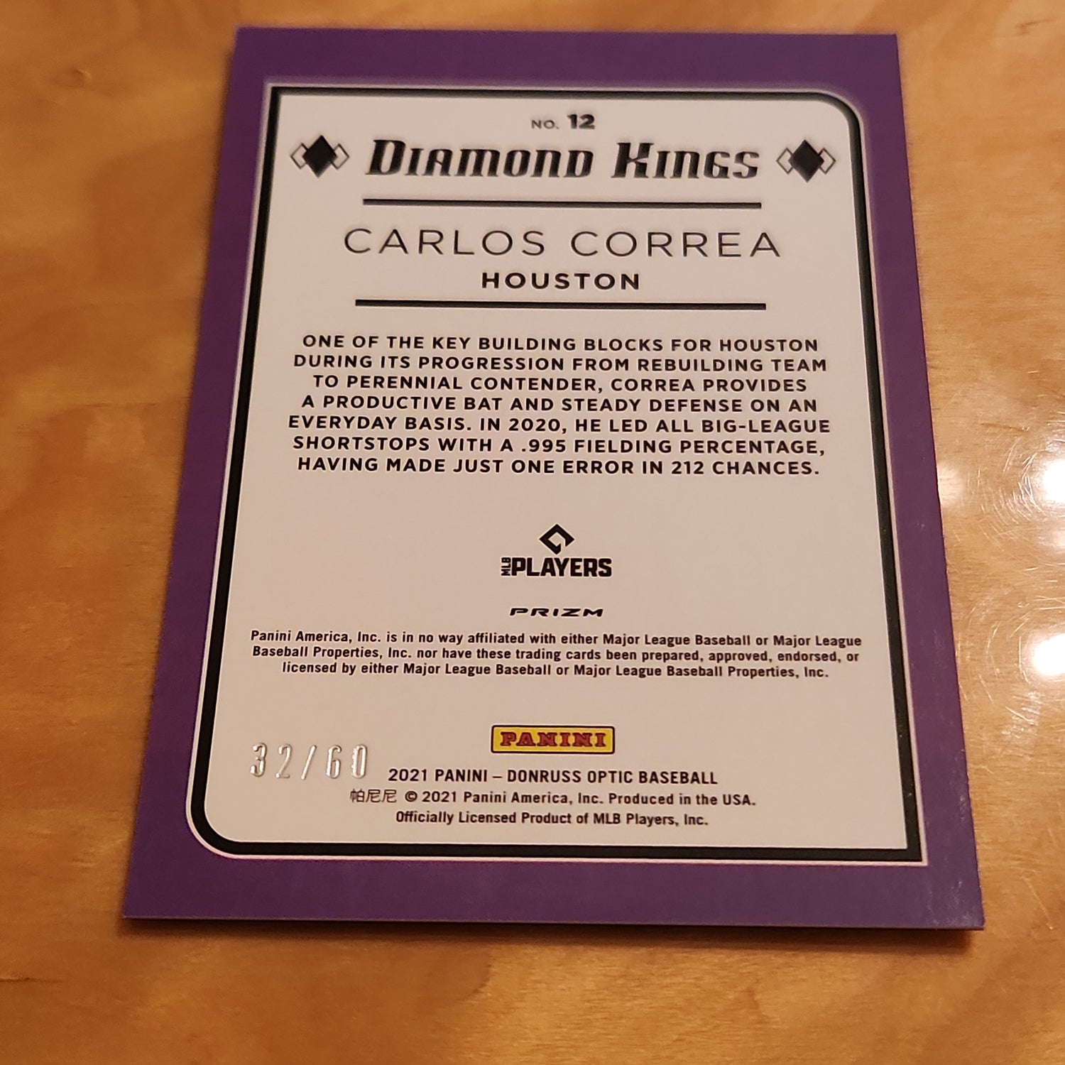 Panini Baseball Prizm Optic Purple Holo Carlos Correa 32/60 #12