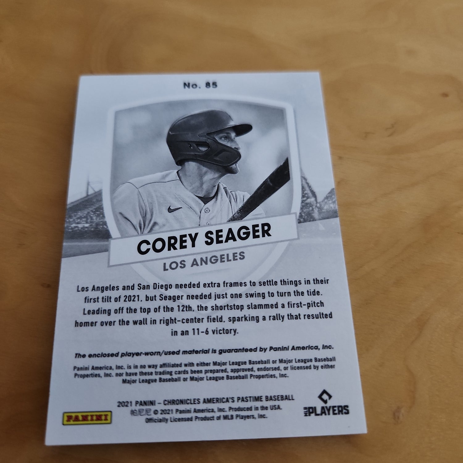 Panini Blue Parallel Corey Seager Relic 41/99 #85