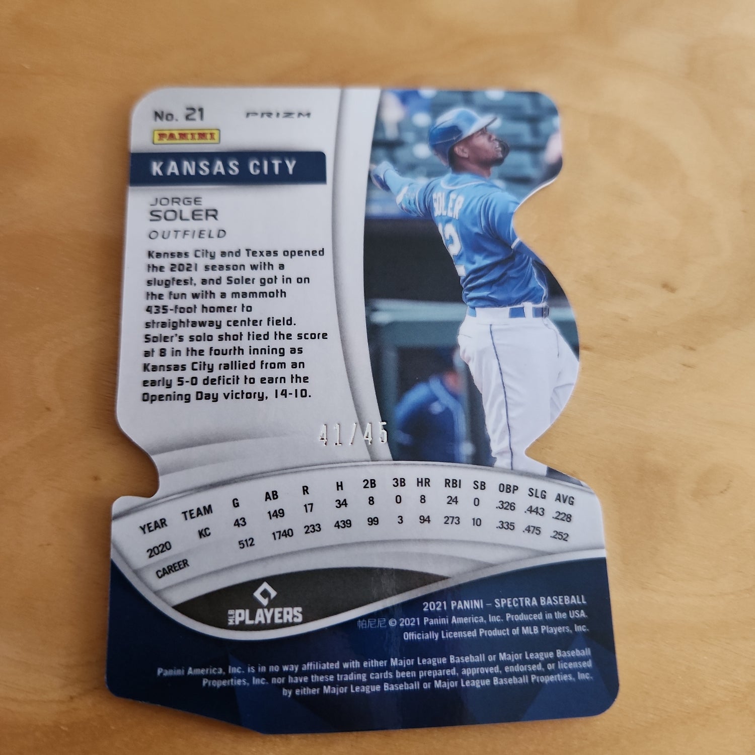 Panini Prizm Spectra Blue Baseball Dye-Cut Jorge Soler 41/45 #21