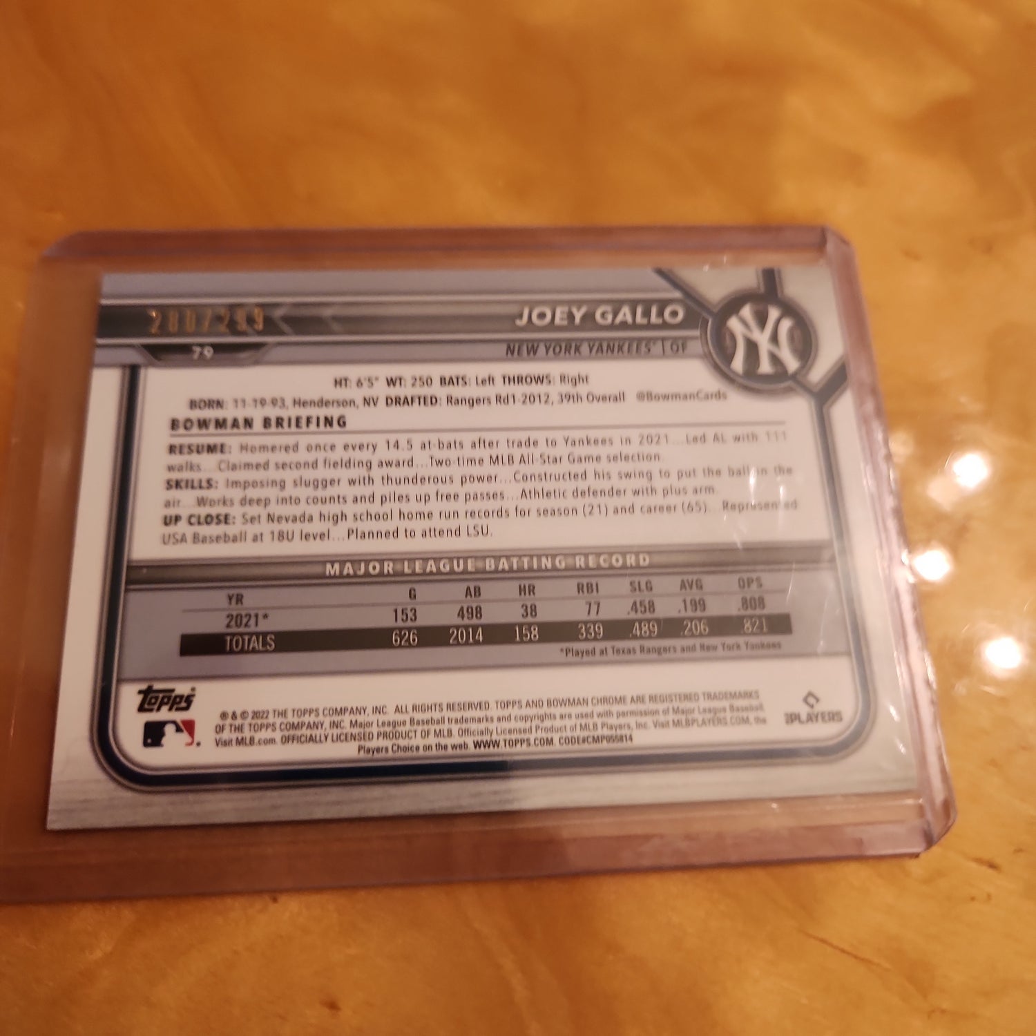 Topps B Chrome Baseball Pink Joey Gallo 280/299 #79