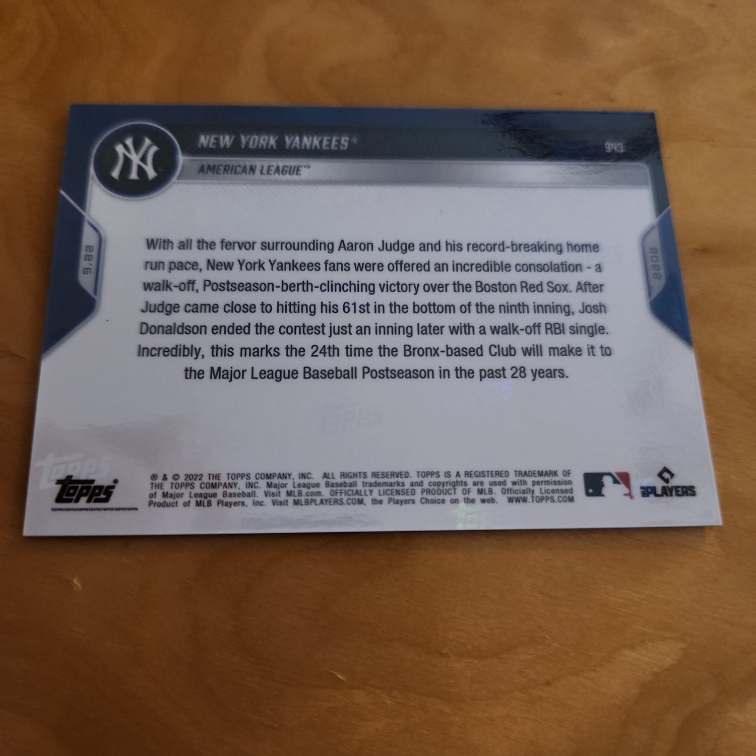 Topps Baseball Now Blue New York Yankees 48/49 #943