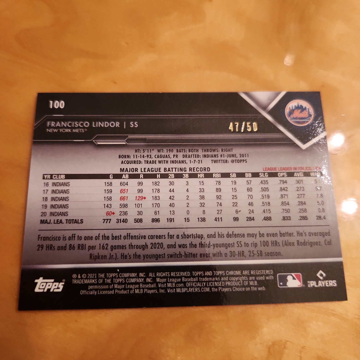 Topps Chrome Black Gold Baseball Francisco Lindor 47/50 #100