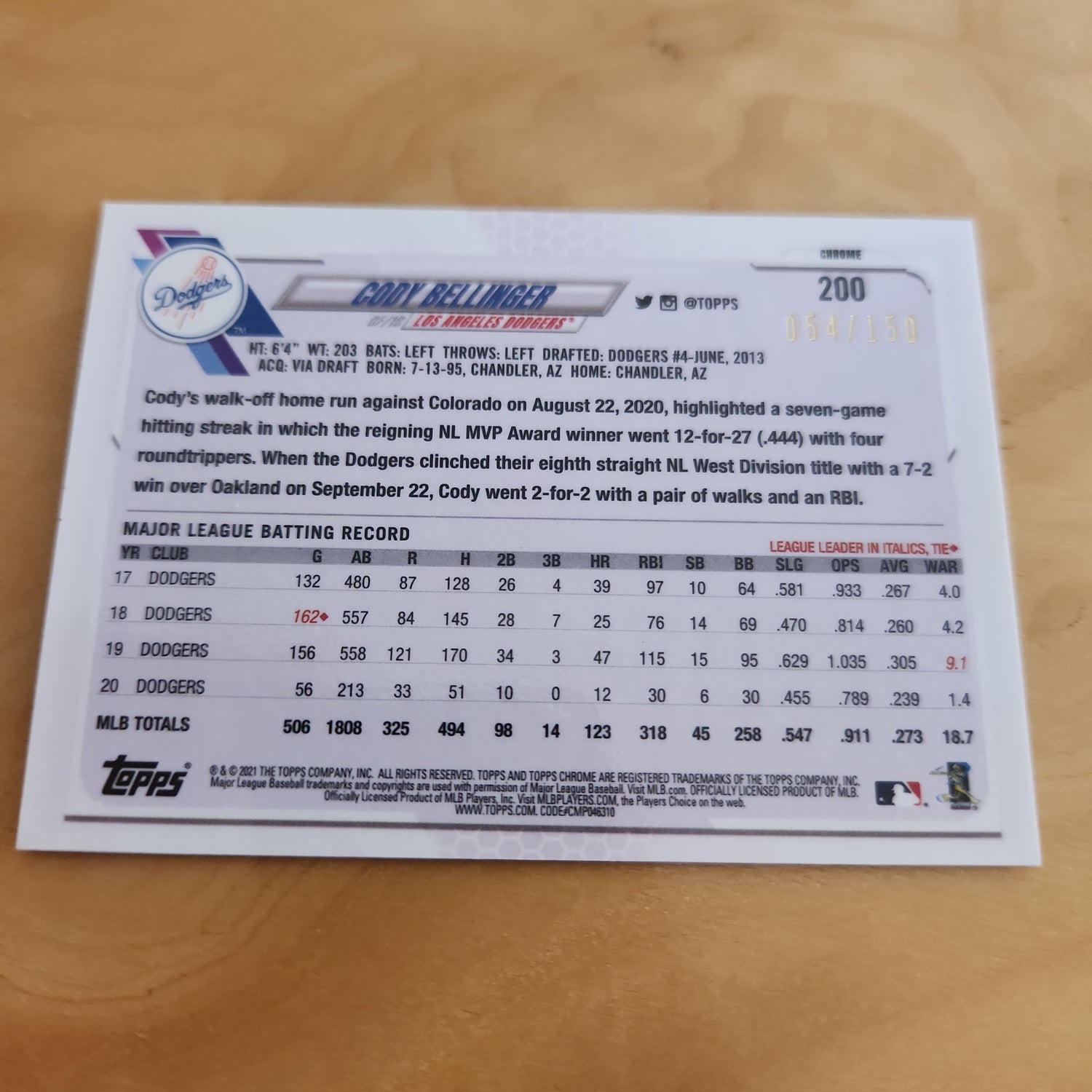 Topps Chrome Blue Cody Bellinger 054/150 #200