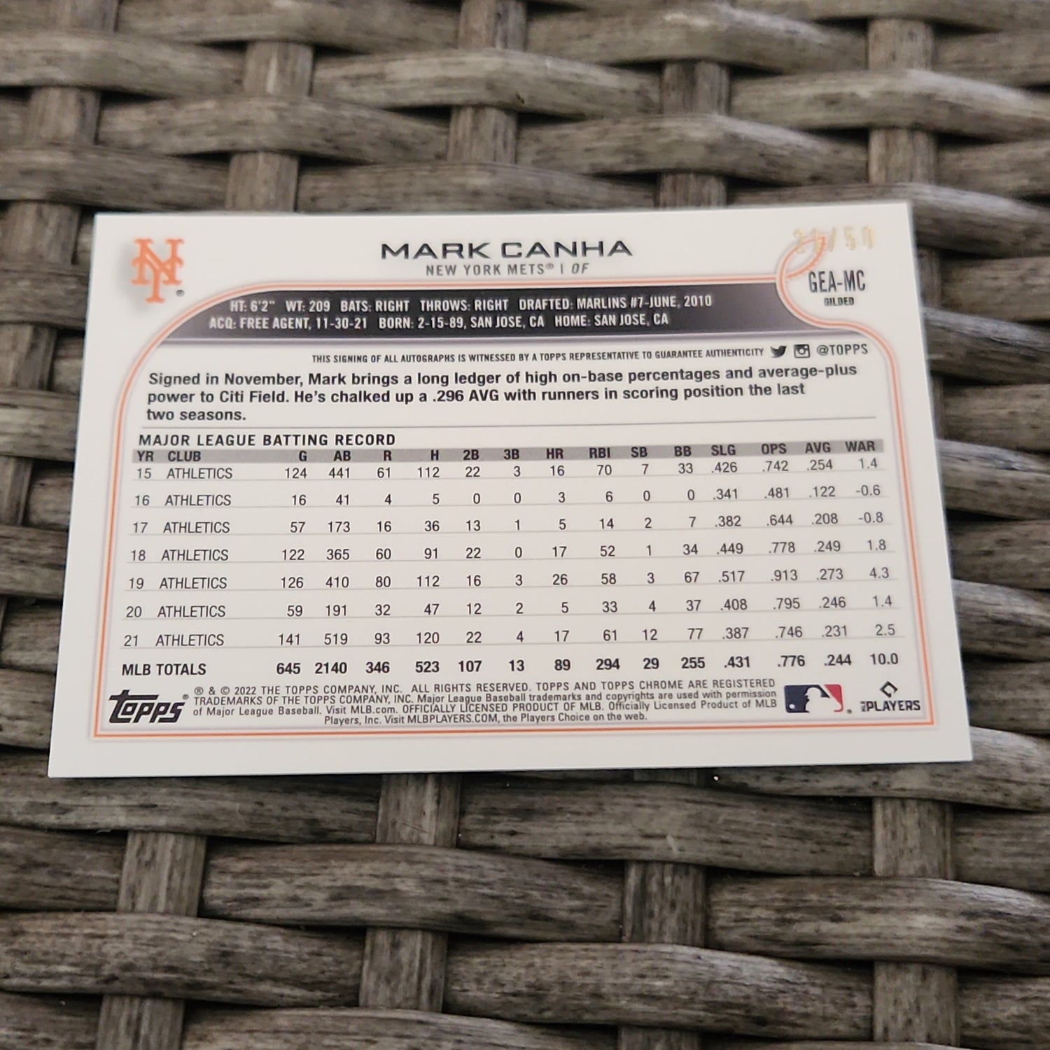 Topps Chrome Gilded Blue Mark Canha Auto 21/50 #GEA-MC