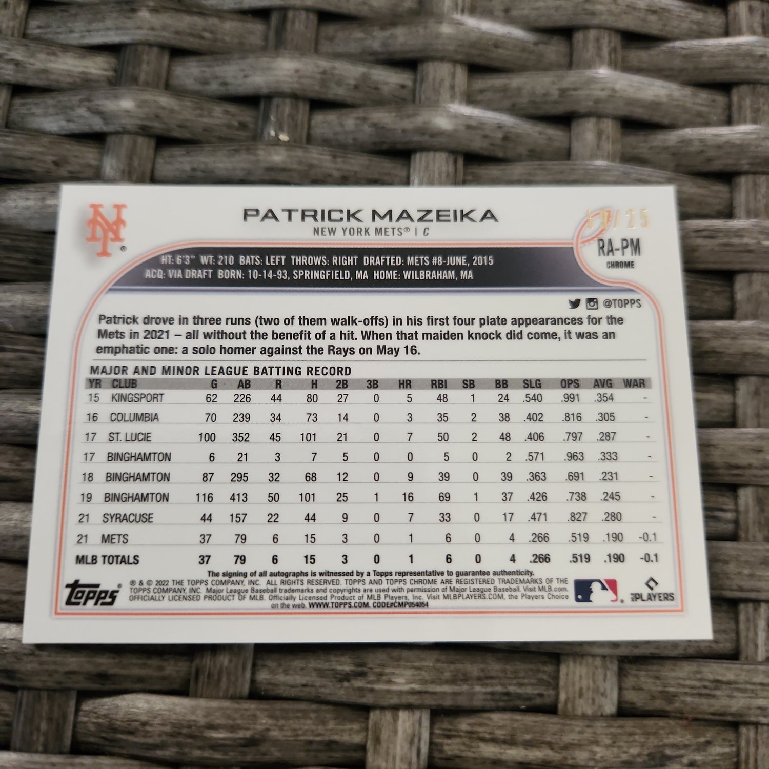 Topps Chrome Orange Parallel Patrick Mazeika RC Auto 19/25 #RA-PM
