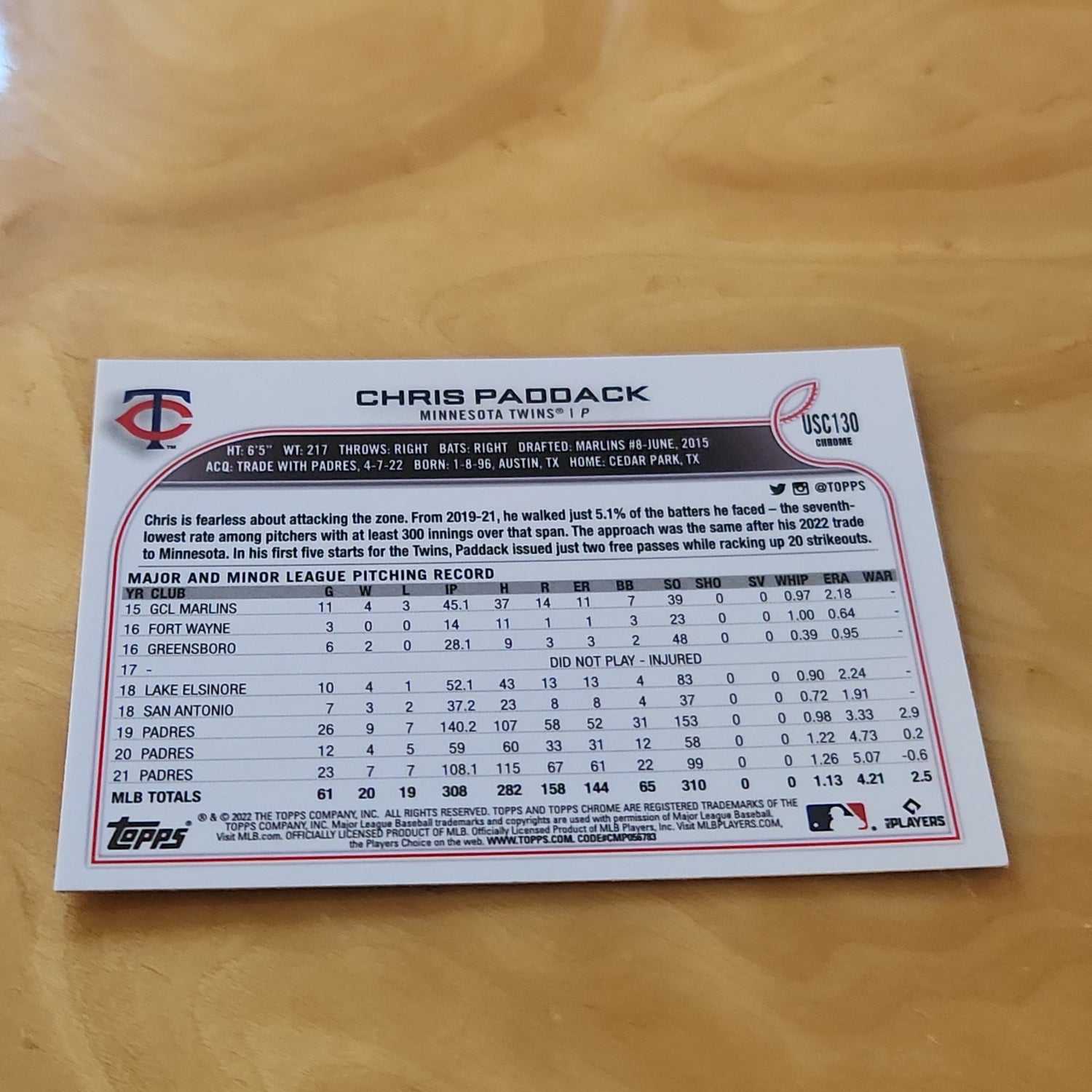 Topps Chrome Purple Chris Paddock #USC130