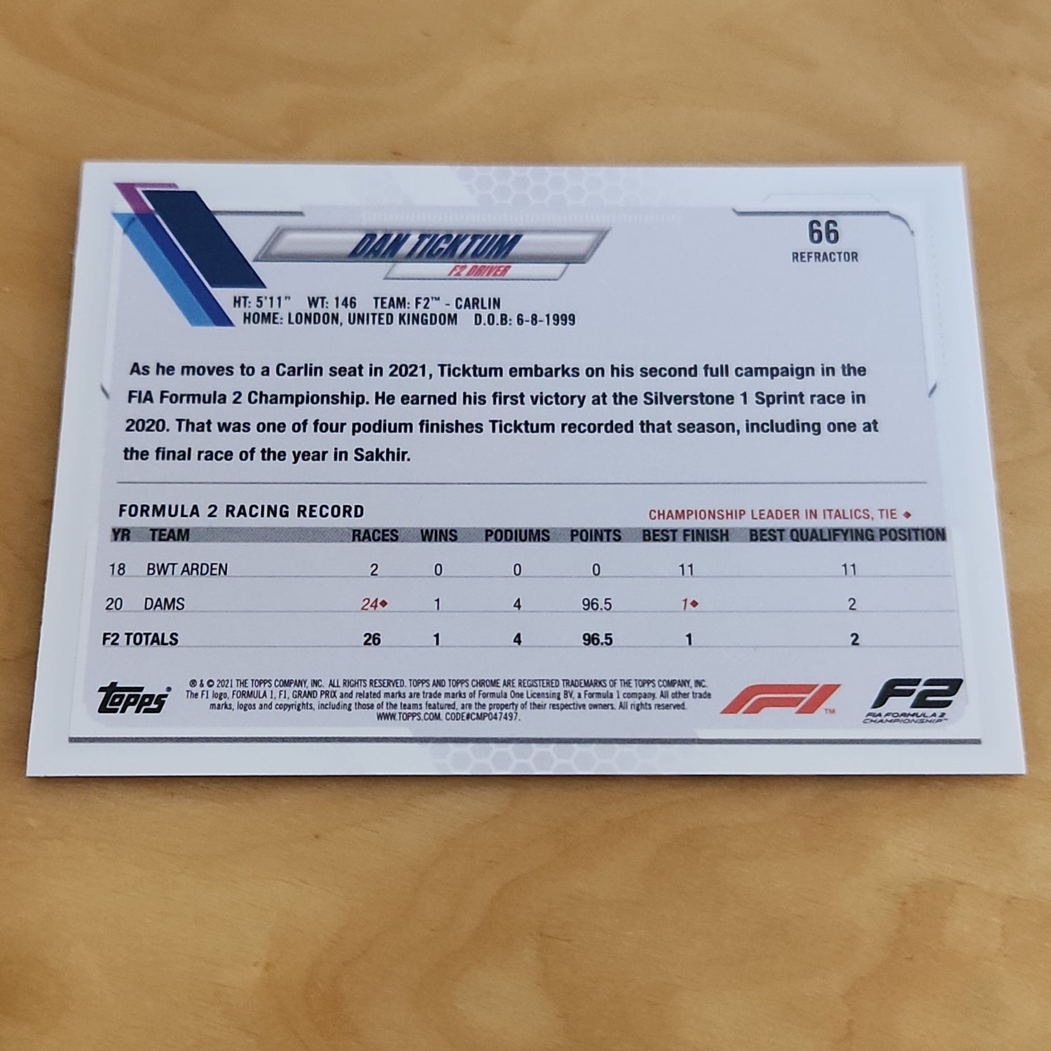 Topps Chrome Refractor Future Stars Dan Ticktum #66