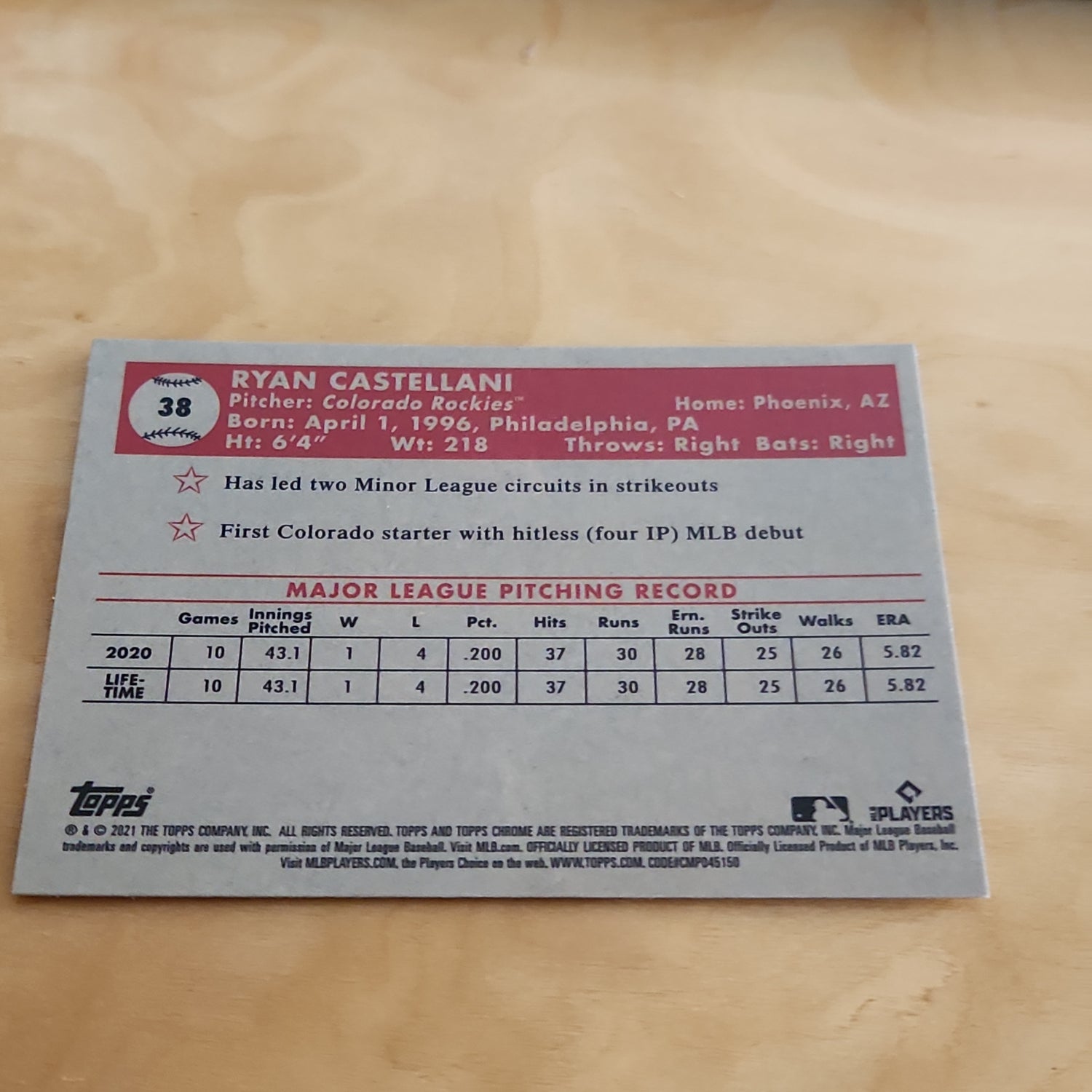 Topps Chrome Ryan Castellani Auto #38