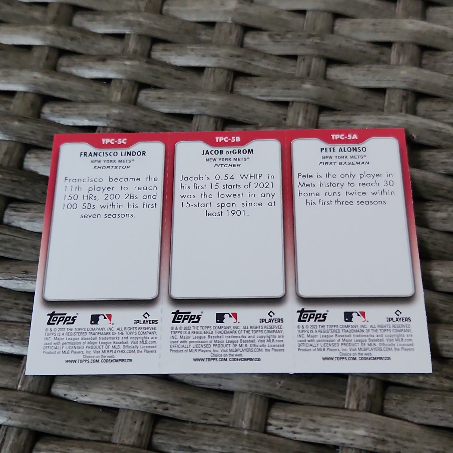Topps Francisco Lindor #TPC-5C Jacob DeGrome TPC-5B Pete Alonso #TPC-5A