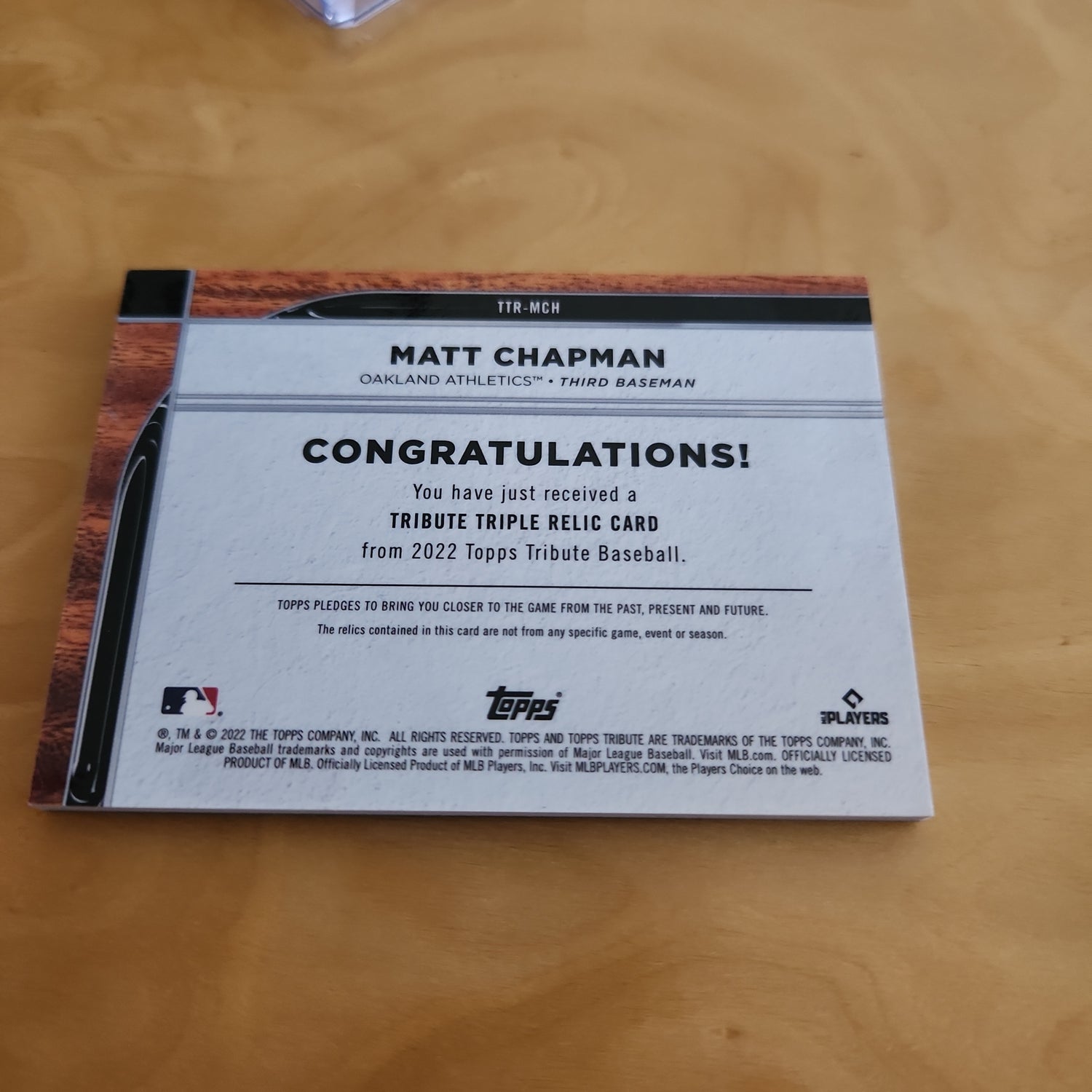 Topps Green Parallel Matt Chapman Triple Relic 31/99 #TTR-MCH