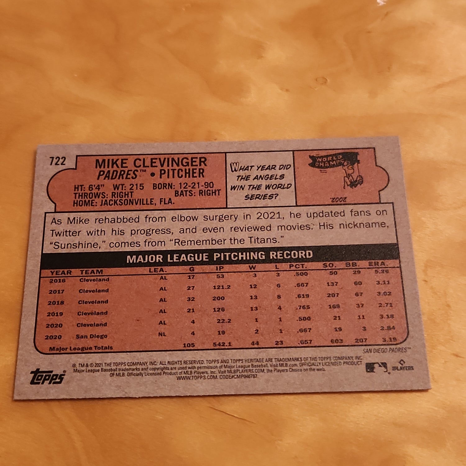 Topps Heritage Mike Clevinger #722
