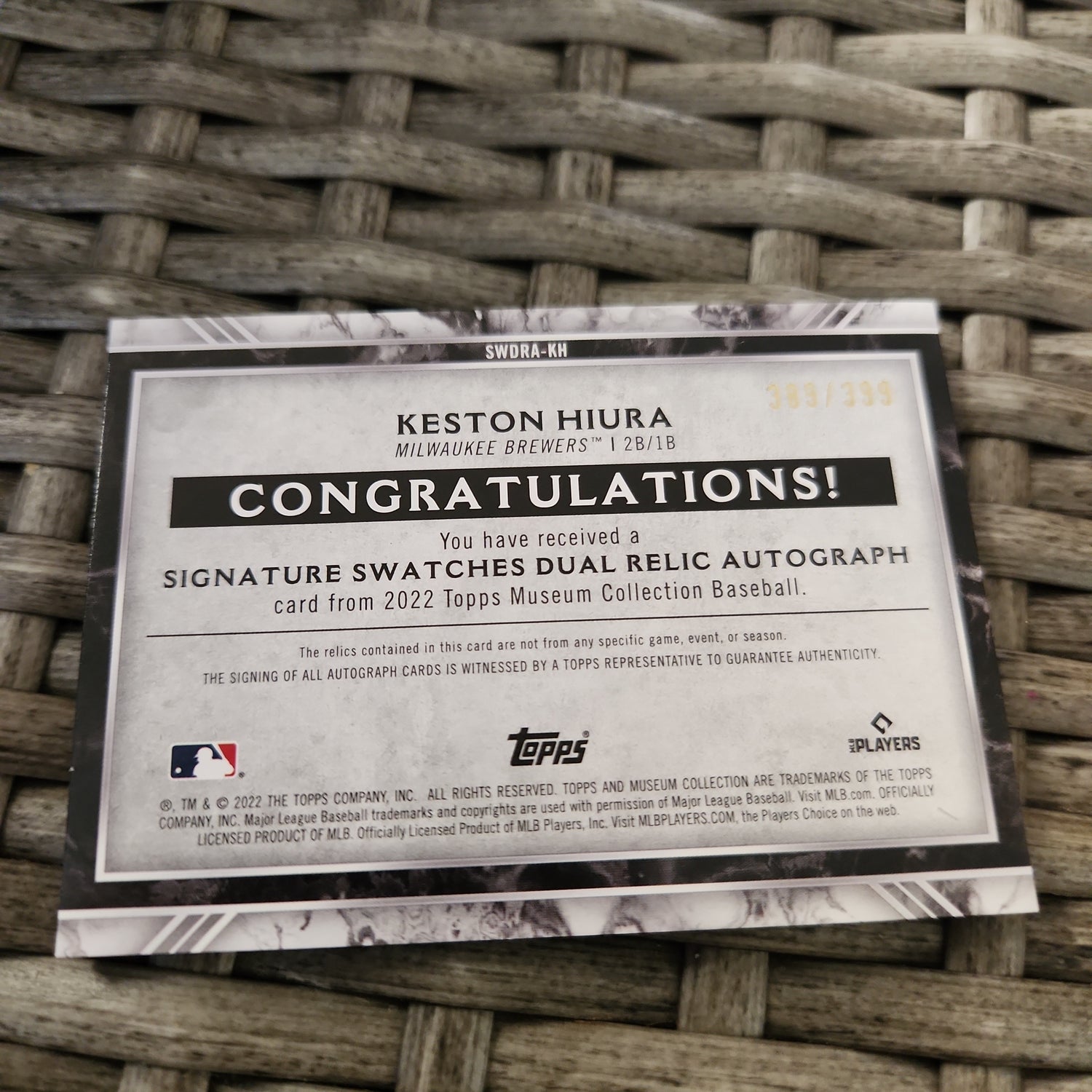 Topps Keston Hiura Double Relic Auto 389/399 #SWDRQ-KH